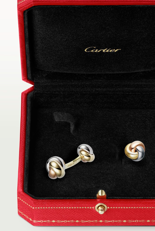 Запонки Cartier коллекции "Trinity de Cartier" выполненные из белого, желтого и розового золота 750 пробы. Вес изделия - 21,10 гр. Подарочный вариант! Полный комплект! Стоимость данного изделия у официального дилера 5100 евро.