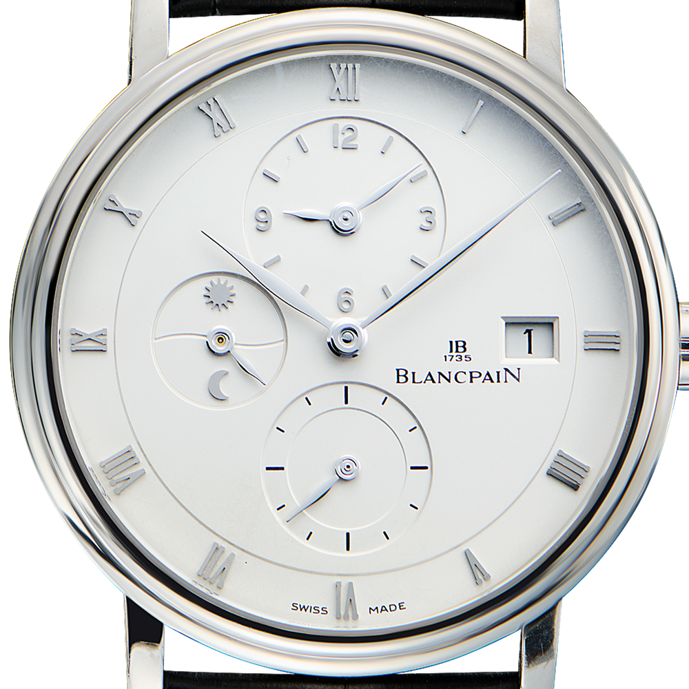 Ref.: 6260-1542-55; Тип: Швейцарские часы; Кому: Мужские; Состояние: Б/У; Бренд: Blancpain; Тип часов: С усложнениями; Модель: Villeret; Комплектация: Тревел-бокс; Материал корпуса (м): Белое золото; Материал ремешка: Кожаный; Размер: 38 мм; Тип механизма: Автоподзавод; Стекло: Сапфировое; Водонепроницаемость: 30 метров; Функции: Дата, часы, минуты, секунды, второе время, Указатель день/ночь;