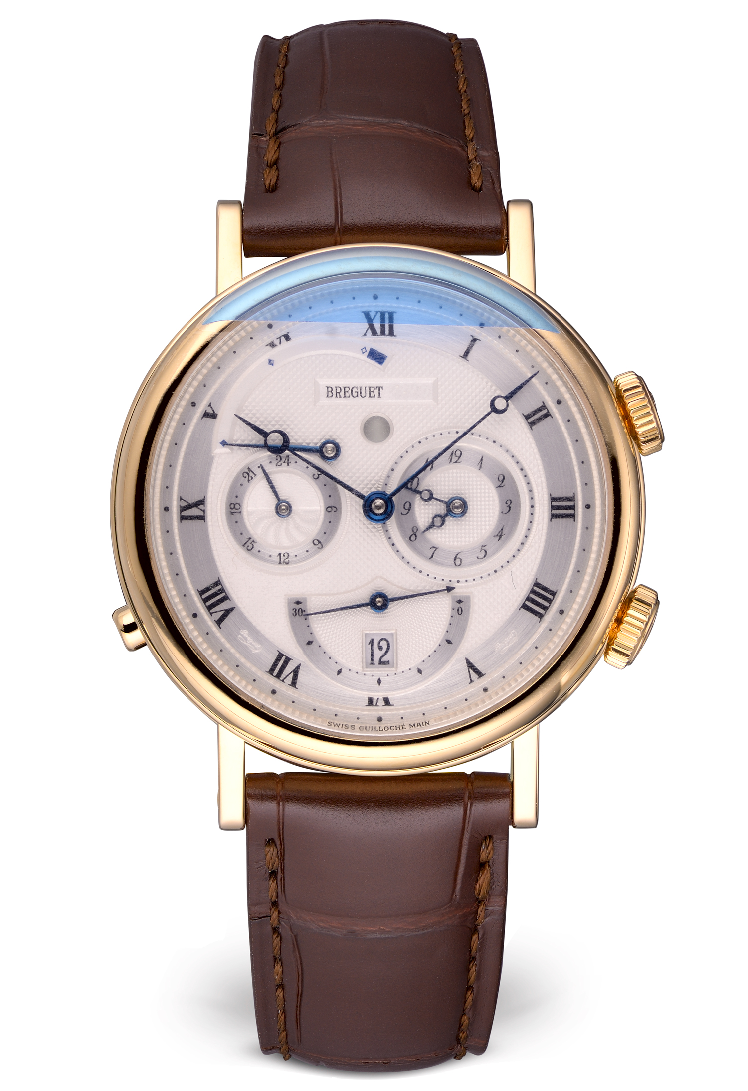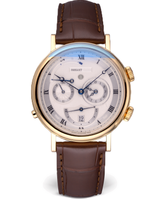 Ref.: 5707; Тип: Швейцарские часы; Кому: Мужские; Состояние: Б/У; Бренд: Breguet; Тип часов: С усложнениями; Комплектация: Документы; Материал корпуса (м): Желтое золото; Материал ремешка: Кожаный; Размер: 39 мм; Тип механизма: Автоматический; Стекло: Сапфировое; Функции: Дата, Часы, Минуты, Секунды, Запас хода, Будильник;