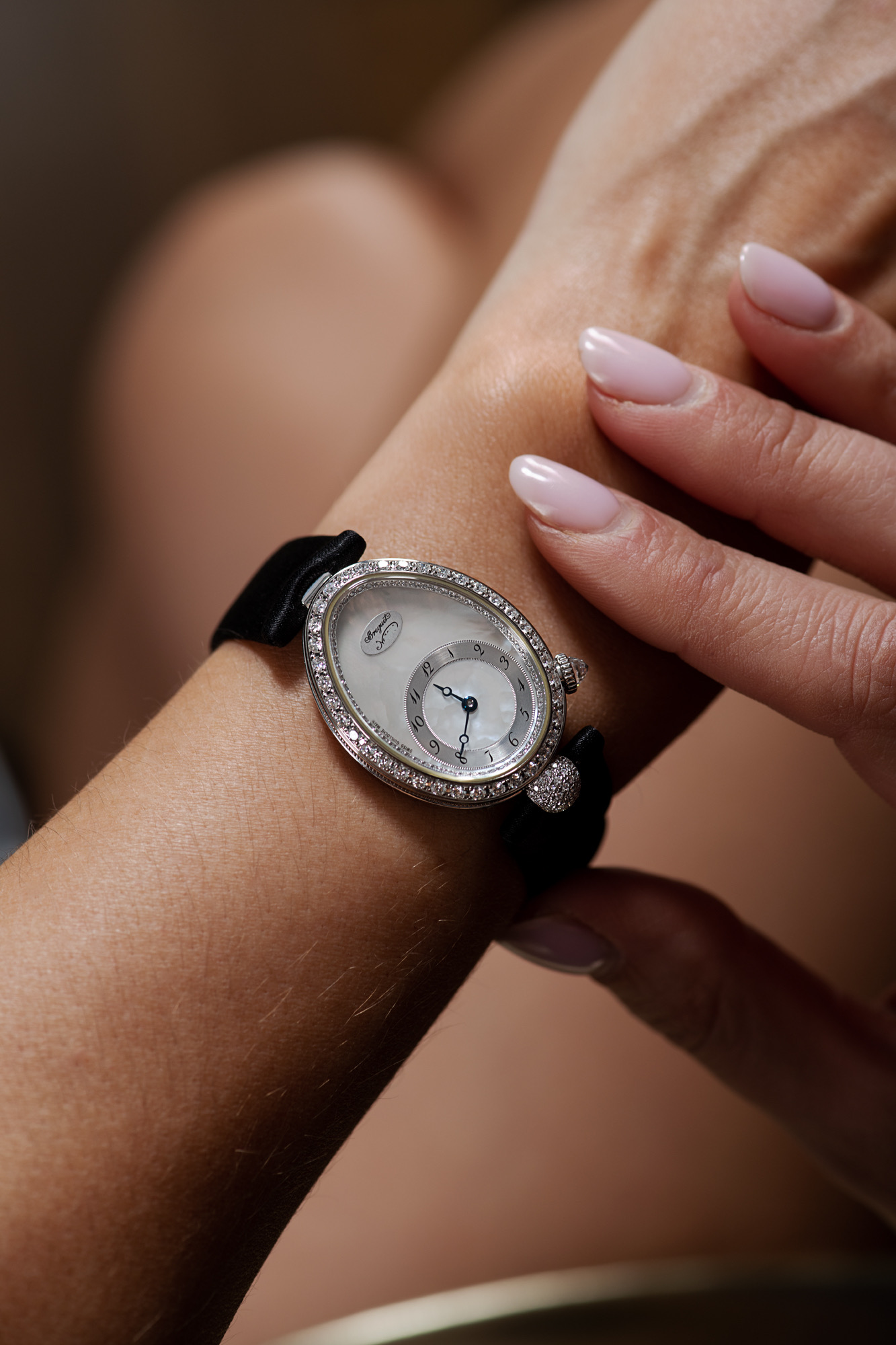 Оригинальная инкрустация бриллиантами. Невероятной красоты часы в отличном состоянии. Ремешок на фото отличается, установлен черный лакированный ремешок, запросите "живые фото" на нашем сайте.