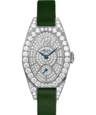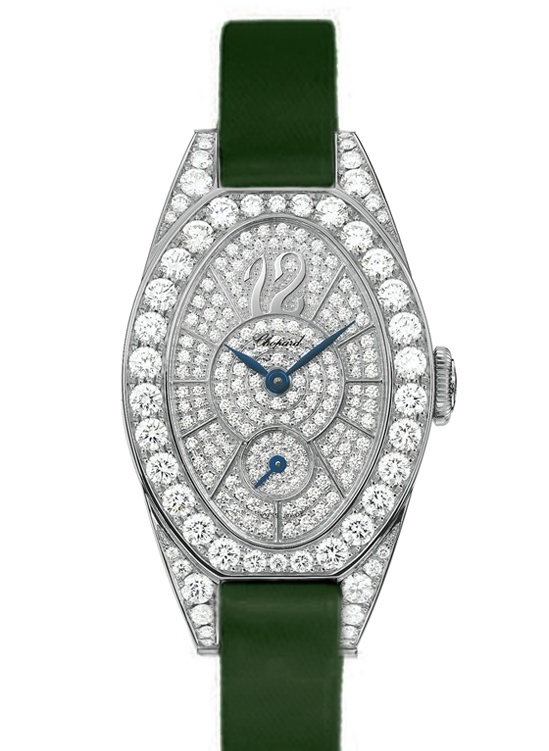 Прекрасная женская модель, состояние новых часов. Главная особенность коллекции - массивный безель, инкрустированный крупными бриллиантами в специальной «коронной» закрепке (crown setting), которая максимально открывает камни для света. Вес часов ~ 43 гр.