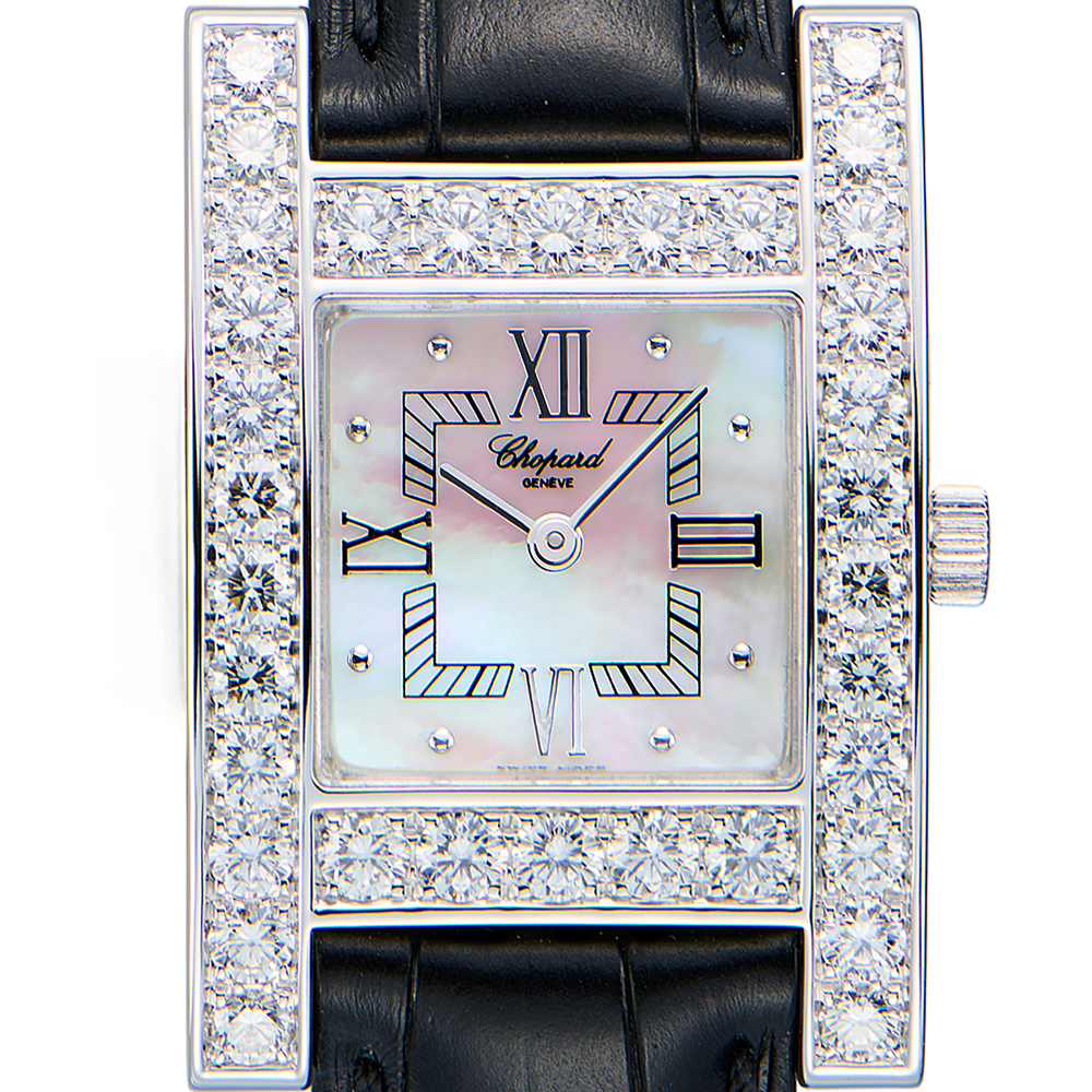Часы в отличном состоянии. Перламутровый циферблат, корпус инкрустирован бриллиантами.