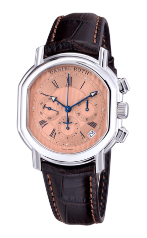 Ref.: S247; Тип: Швейцарские часы; Кому: Мужские; Состояние: Б/У; Бренд: Daniel Roth; Тип часов: С усложнениями; Упаковка: Нет; Документы: Есть; Корпус: Сталь; Размер: 38; Тип механизма: Автоматический; Стекло: Сапфировое; Ремешок: Кожа аллигатора; Состояние: Идеальное; Цвет циферблата: Розовый; Функции: Часы, Минуты, Секунды, Дата, Хронограф;