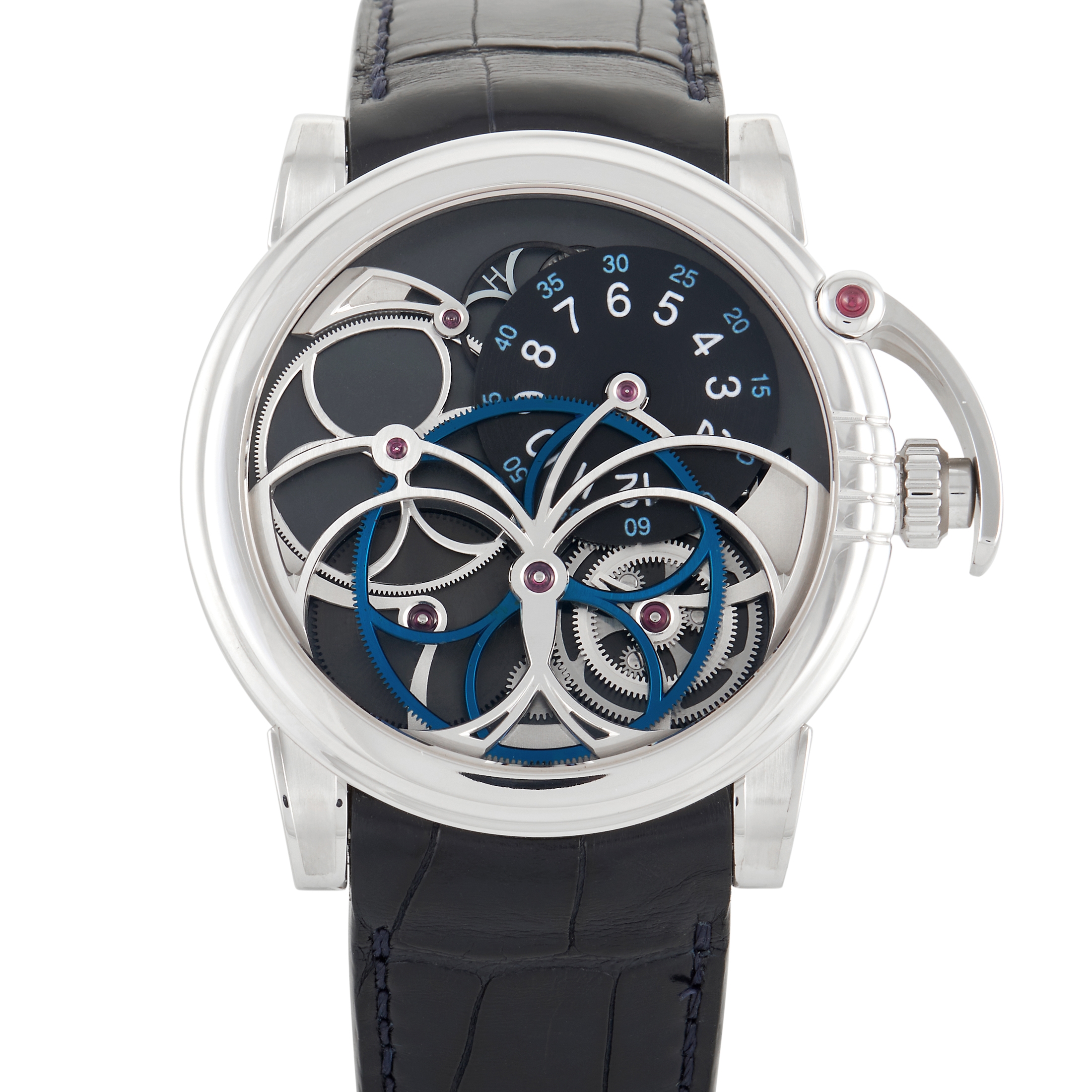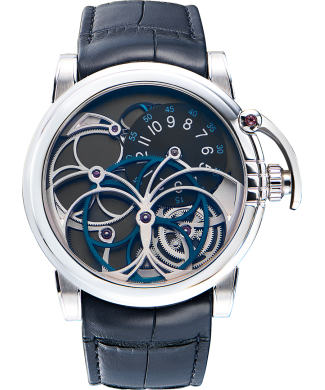 Лимитированная версия - 50 экземпляров. Коллекция Opus (1-14) известна как экспериментальная площадка для создания уникальных, технически сложных и экстравагантных часов в сотрудничестве с ведущими независимыми мастерами. Для Opus 7 мастером был Андреас Штайнер. Каждая модель в этой серии — это прорыв в дизайне и механике.