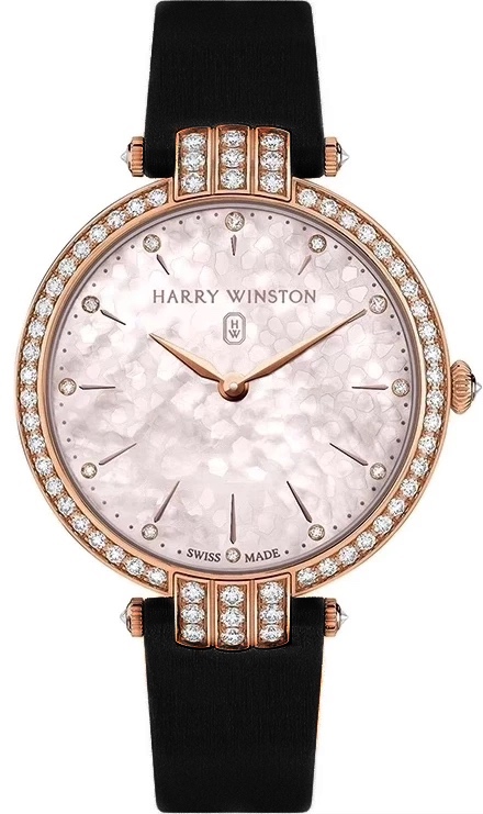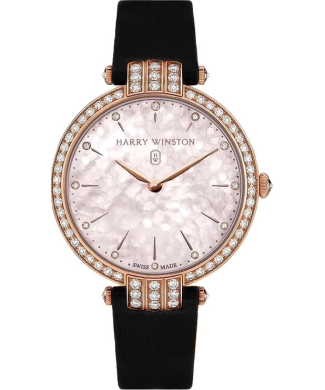 Циферблат розово-жемчужный, 12 белых бриллиантов. Часы в отличном состоянии. Установлен черный кожаный ремешок, запросите "живые фото" на нашем сайте.