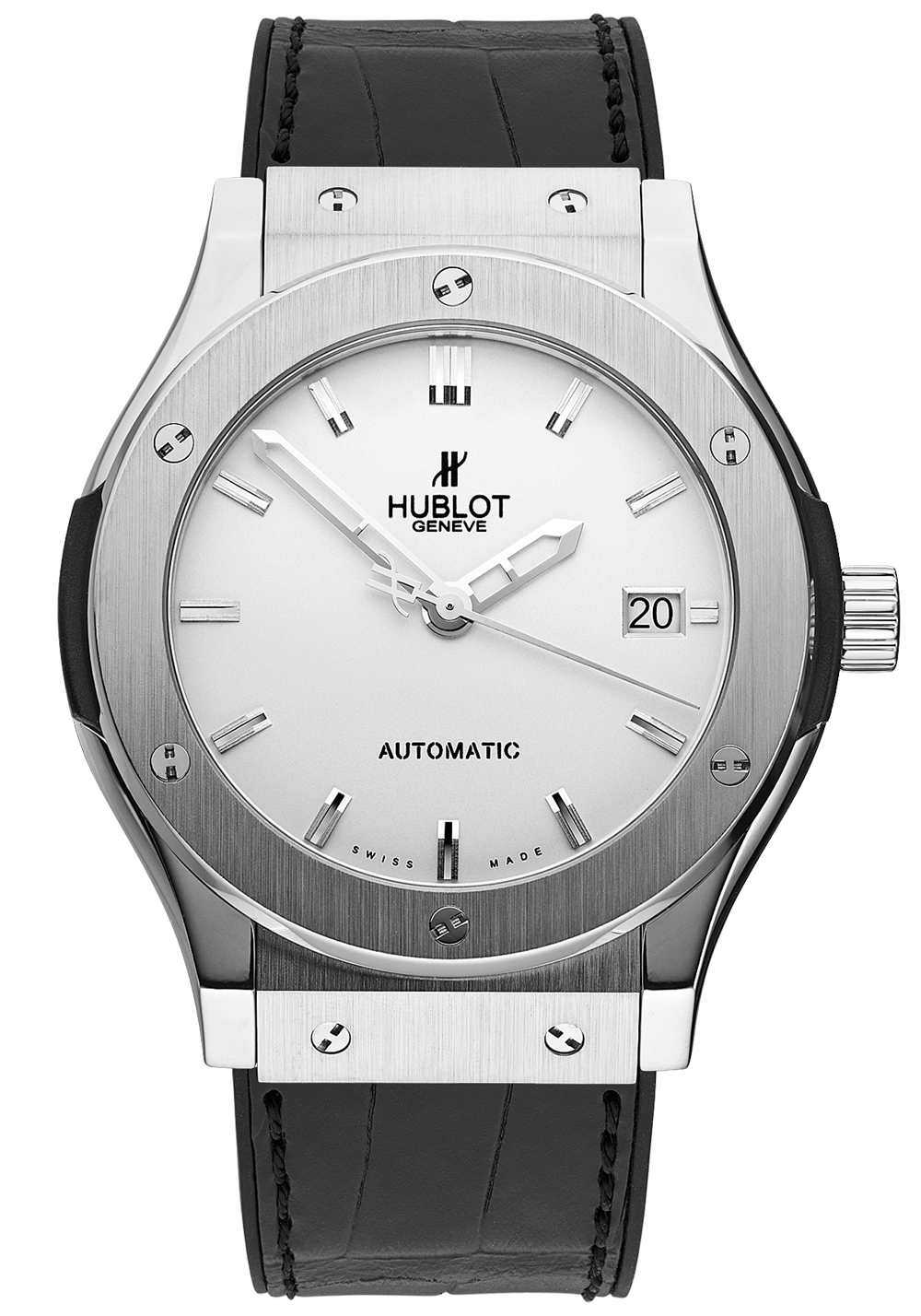 Ref.: 511.NX.2610.LR; Тип: Швейцарские часы; Кому: Мужские; Состояние: Новые; Бренд: Hublot; Тип часов: Классические; Модель: CLASSIC FUSION; Пол: мужской; Комплектация: Документы; Материал корпуса (м): титан; Материал ремешка: Кожаный; Размер: 45 мм; Тип механизма: Автоматический; Стекло: Сапфировое; Водонепроницаемость: 50; Запас хода: 42ч; Циферблат: Серебристый; Код: 1220; Функции: Часы, минуты, секунды, дата;
