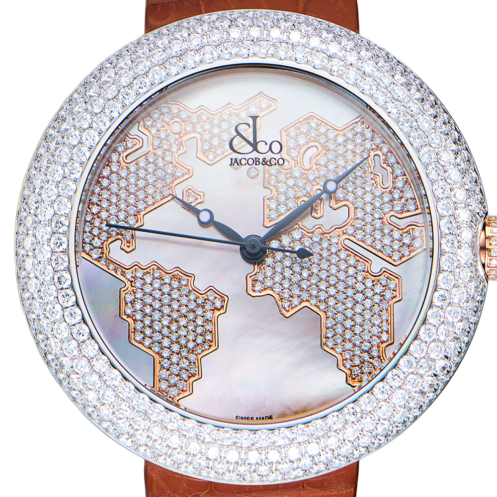 Безель и циферблат инкрустированы белыми бриллиантами. Циферблат перламутровый. Лимитированная версия - 999 экземпляров. ком.вп