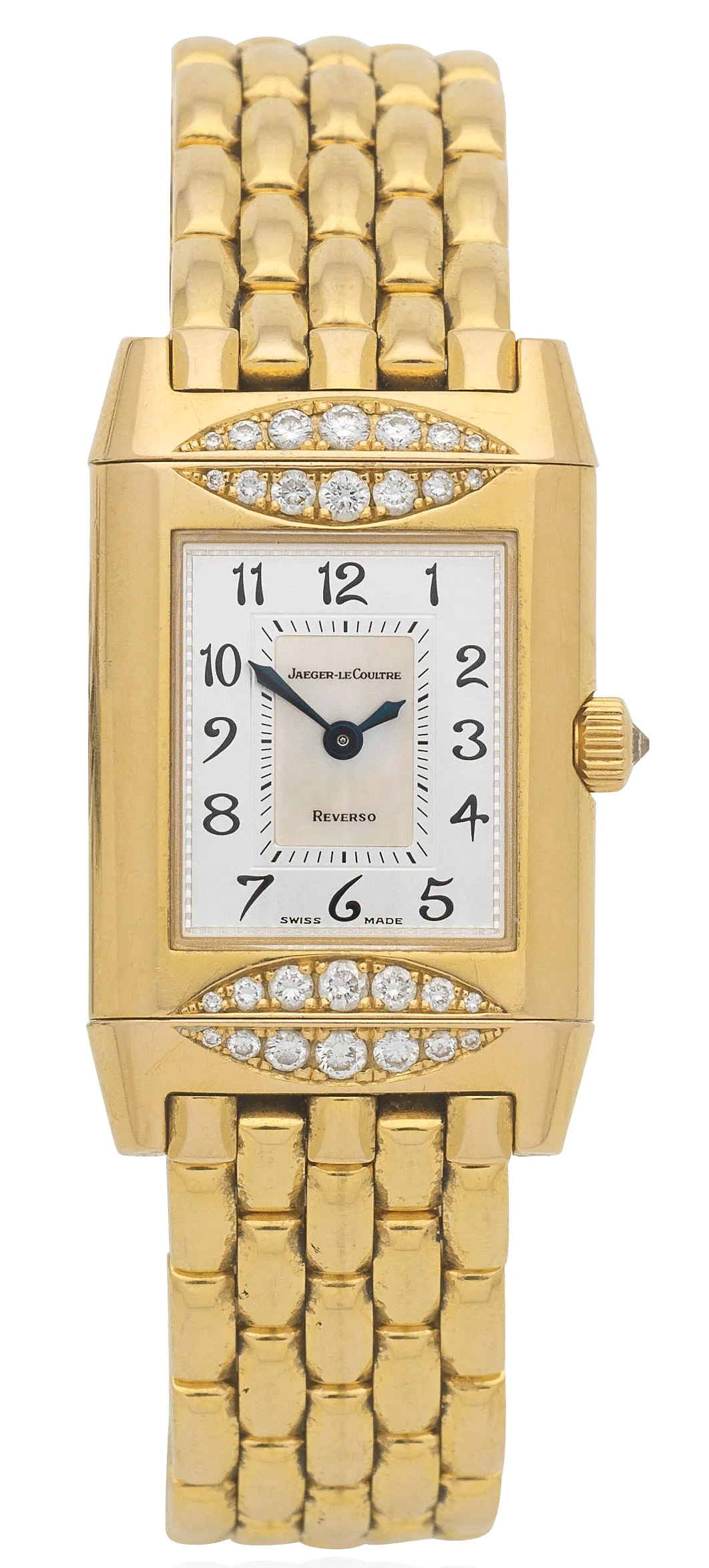 Великолепные часы из желтого золота. Ключевой особенностью часов является наличие двух разных циферблатов на противоположных сторонах вращающегося корпуса. Эта концепция позволяет носить часы как днем, так и вечером, меняя их стиль одним движением руки. На запястье 16-17 см. ком.вп