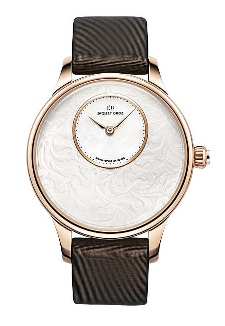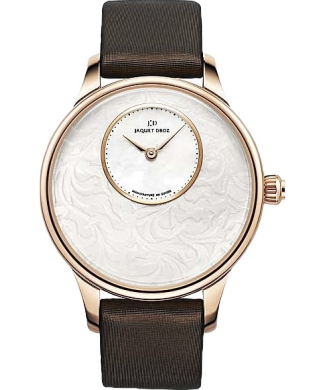 Часы отличаются децентрализованным циферблатом, что является характерным почерком мастеров Jaquet Droz, и выполнены в изысканном стиле ар-деко.