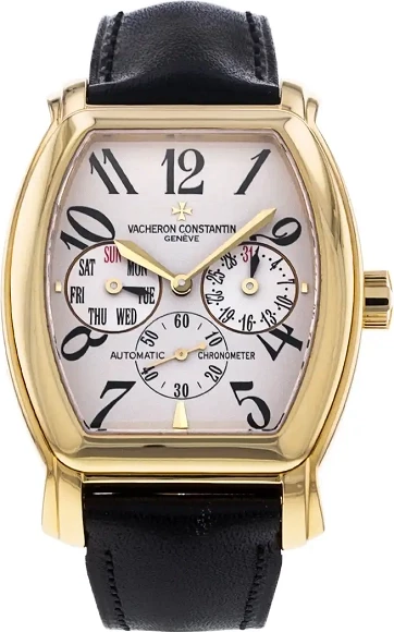 Ref.: 42008; Тип: Швейцарские часы; Кому: Мужские; Состояние: Б/У; Бренд: Vacheron Constantin; Тип часов: С усложнениями; Модель: Malte; Комплектация: Travel Box; Материал корпуса (м): Желтое золото; Материал ремешка: Кожаный; Размер: 35.6x39.5 мм; Тип механизма: Автоподзавод; Запас хода: 65 часов; Стекло: Сапфировое; Водонепроницаемость: 50 метров; Функции: Часы, минуты, секунды, дата, день недели;