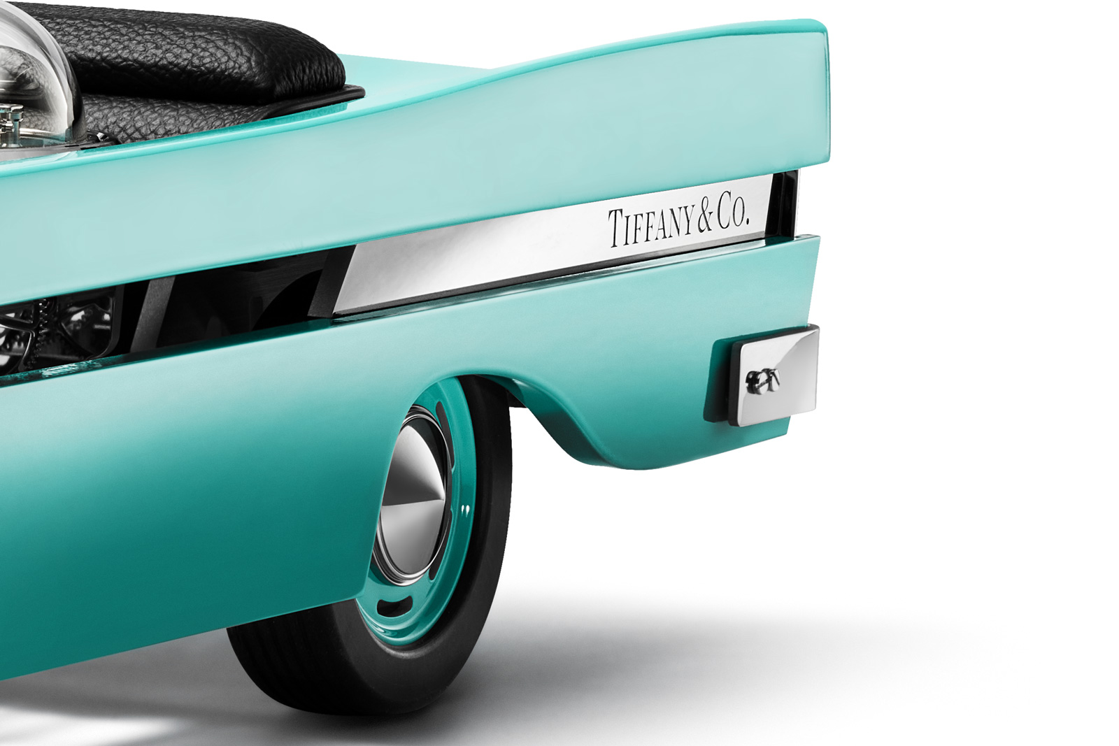 Tiffany Taxi — это восьмидневные часы из алюминия и стали, естественно, в фирменном цвете бренда. В форме типичного американского автомобиля 1950-х годов с хвостовыми плавниками, Tiffany Taxi является одновременно часами и автоматоном: включает в себя индикаторы часов и минут, а также двигатель V8 с движущимися поршнями. Они изготовлены компанией L’Epée 1839, ведущим швейцарским специалистом по производству часов высокого класса.