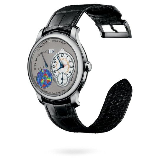 Представляя новую модель Octa UTC®, разработчик F.P. Journe снова выпустил инновационное творение, в котором используется запатентованная система, определяющая часовые зоны в полных часах в соответствии с современными стандартами. С механической точки зрения, часы указывают различные периоды времени, связанные с географической позицией на земле, учитывая при этом различия, касающиеся зимнего и летнего времени.