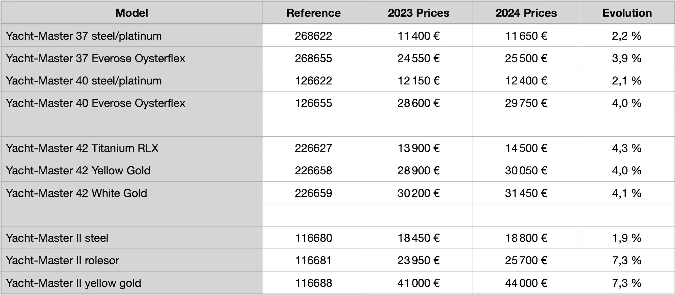 Прайс-лист Rolex 2024 года показывает в среднем рост примерно на 4%.
