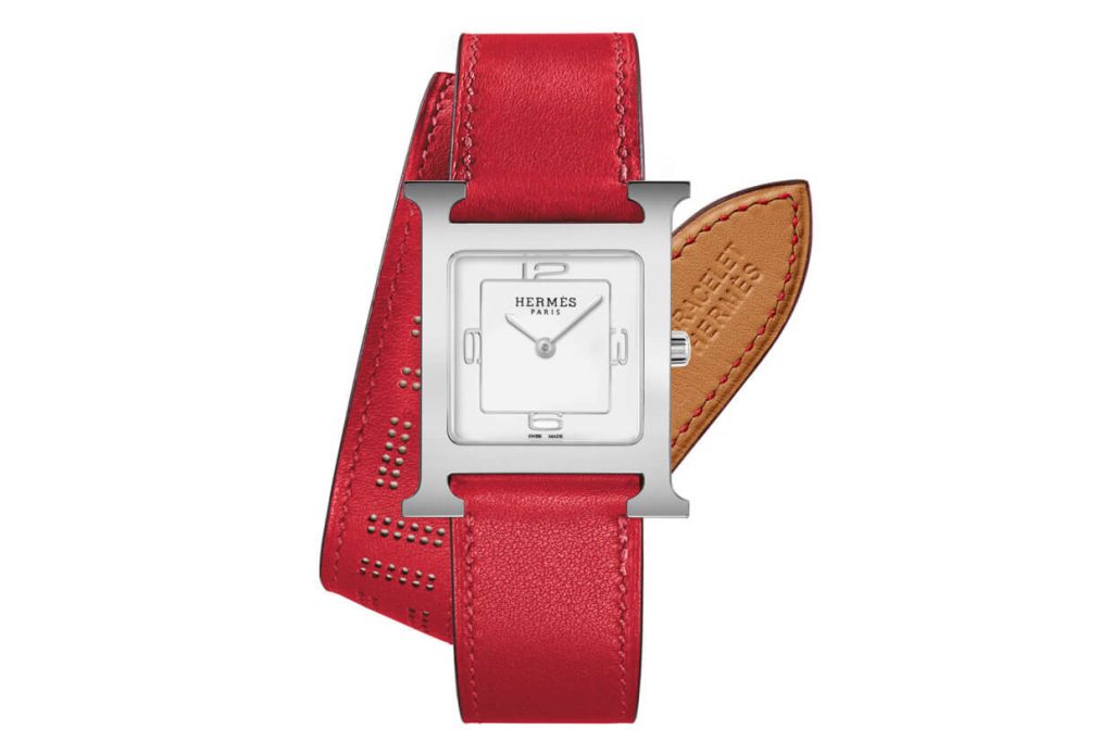 Созданный мастерами Hermès Horloger, корпус часов Heure H доступен в двух версиях. В первой версии корпус из стали украшен абрикосовым или алым ремешком, а второй вариант, с покрытием из розового золота, представлен с черным ремешком или ремешком цвета пакли. Белый лакированный циферблат, размеченный четырьмя арабскими цифрами и металлическими стрелками, создает привлекательный контраст с цветными ремешками. Результат —идеальное сочетание строгого стиля и технического исполнения, подчеркнутое искусностью мастерства и экспертным подходом.